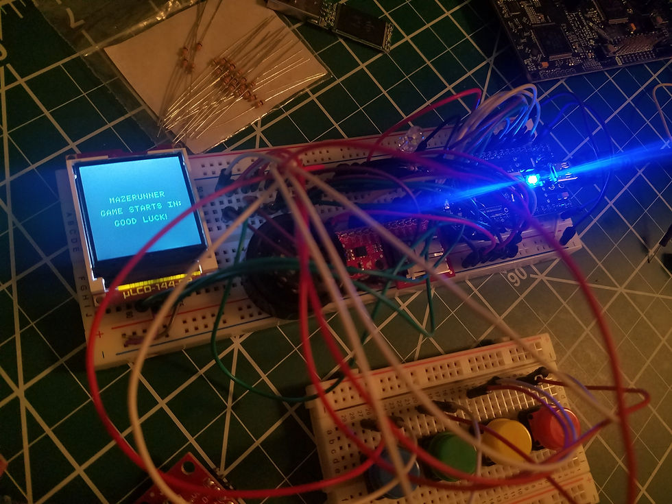 The goal behind this project was to use the Arm Mbed Microcontroller to run a virtual version of a tilting maze game. The requirements were to have at least three levels that were accessible through a doubly linked list, walls, accurate real-time physics simulation, obstacles, and a timer. All of the other features were extra credit. I had a great time with this project, which was why I went so above and beyond for the game as well as the video that you can watch below! (I also have a video showing off a Galaga themed version of Space Invaders I wrote for this hardware setup!)